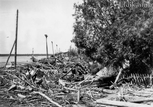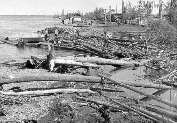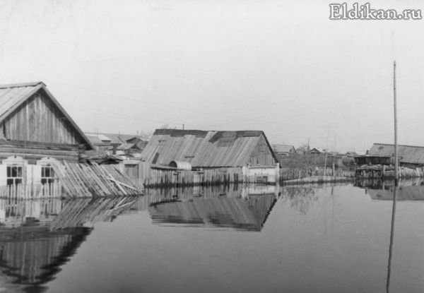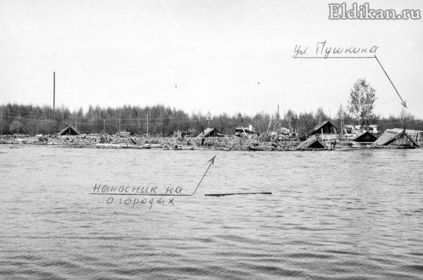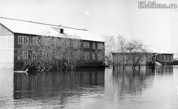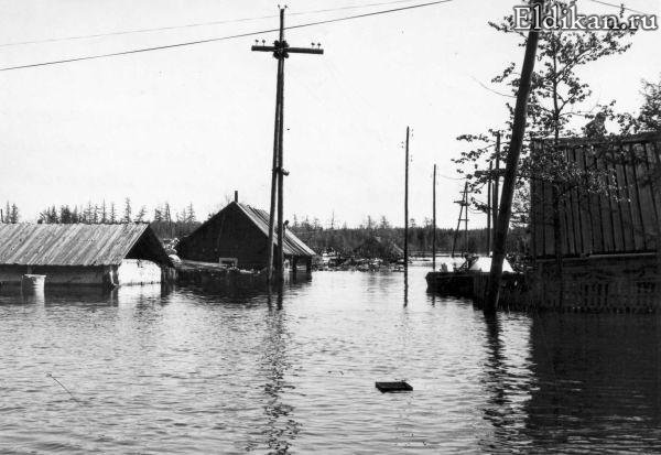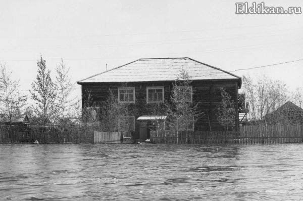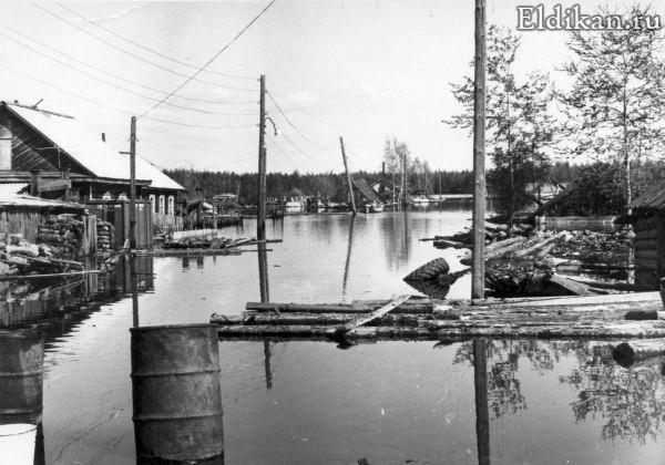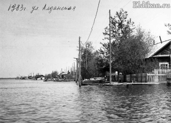 [Большая вода] ул. Алданская (район магазина N1 и пристани, напротив магазина N1 белое здание - магазин «Колобок», сначало был хлебным, потом - вино-водочным)