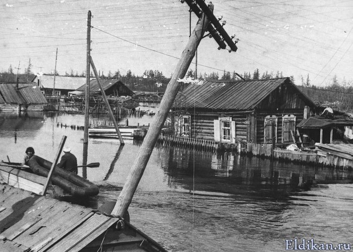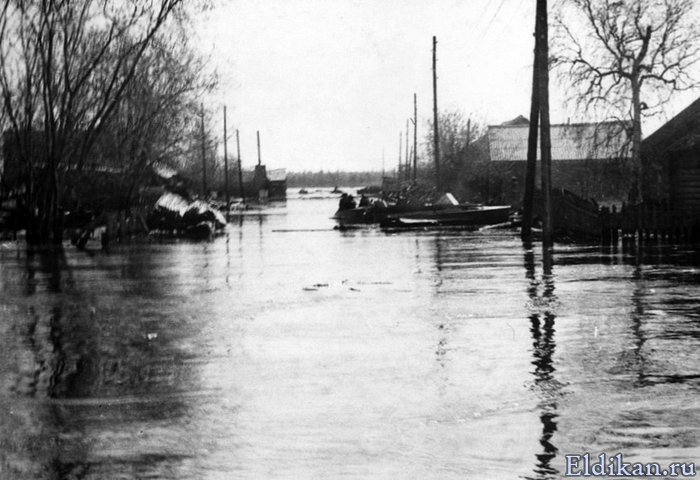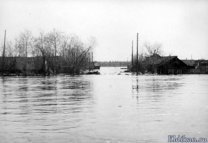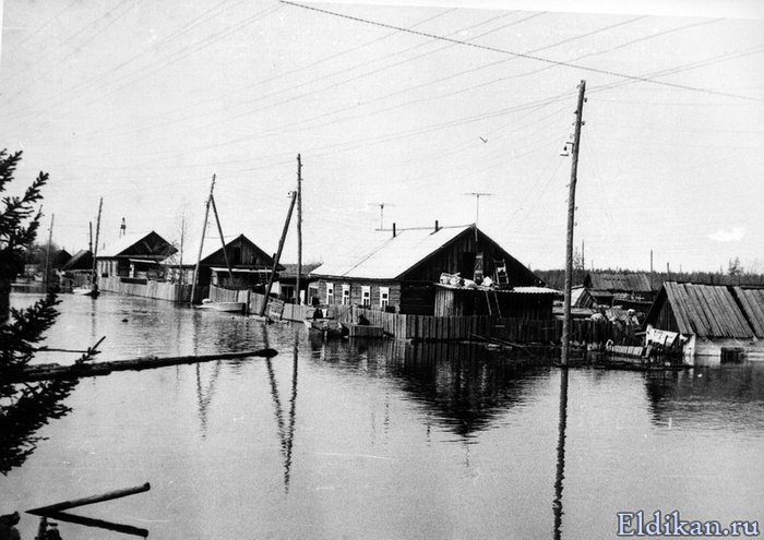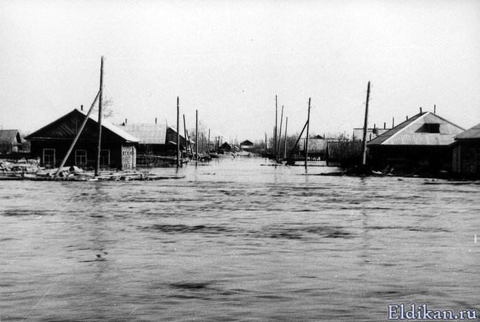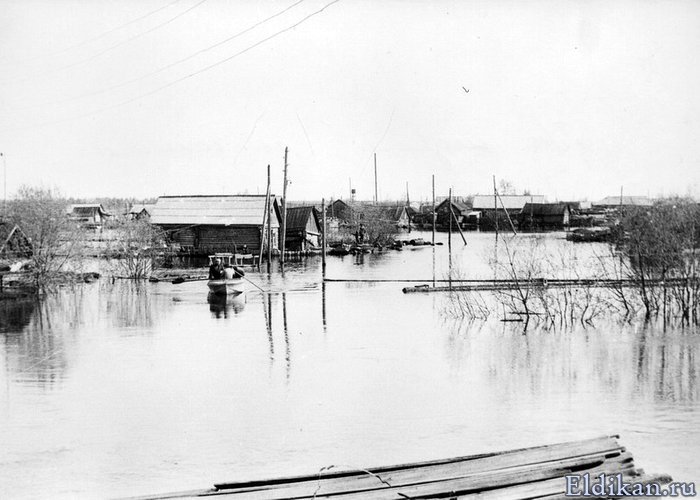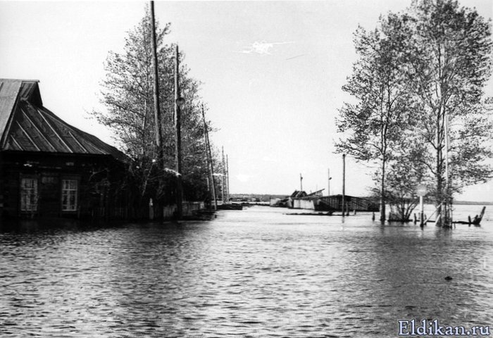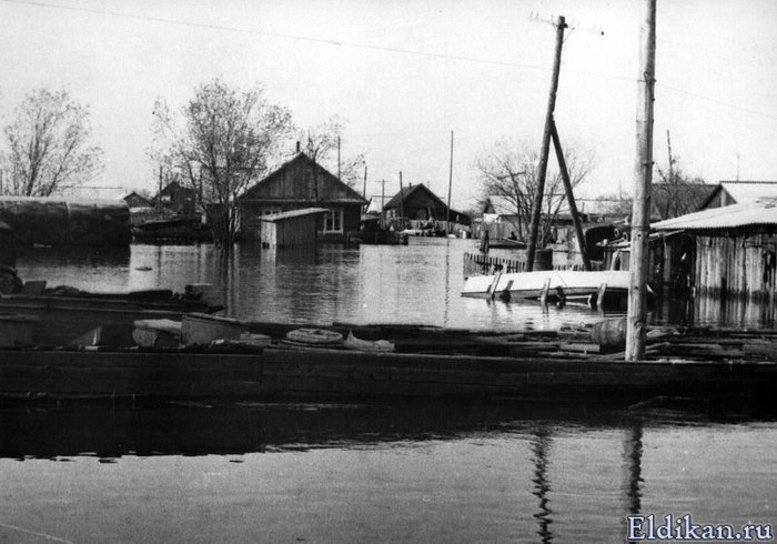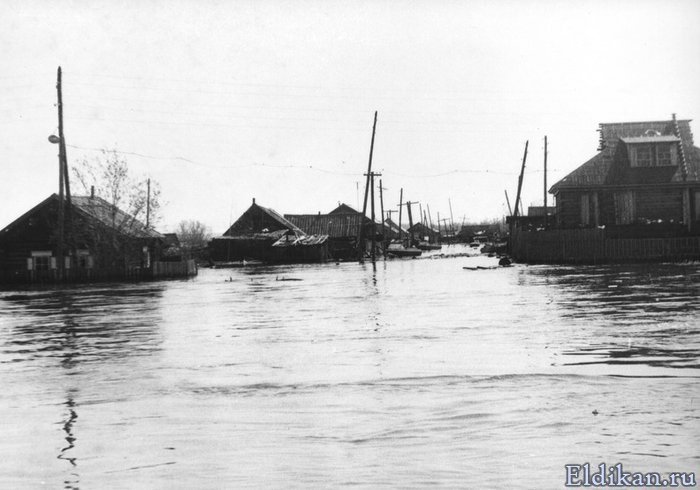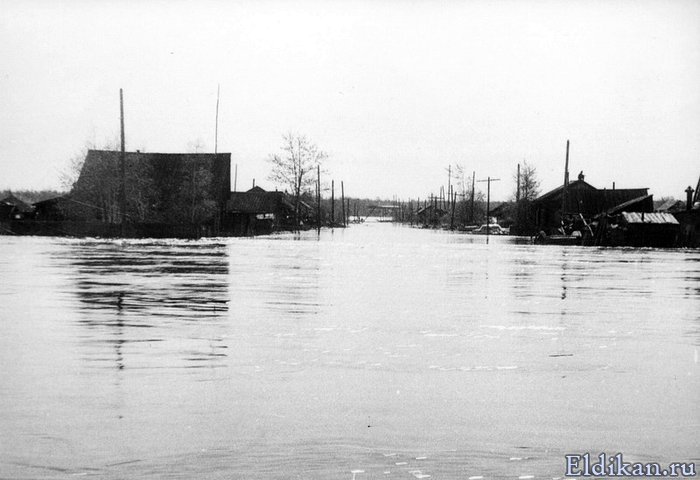 [Большая вода] Паводок-1983. Ул. Советская. Кто-то неплохо позаботился о своем доме.. Фундамент высокий, обитаемый чердак.. Наводнение нипочём.