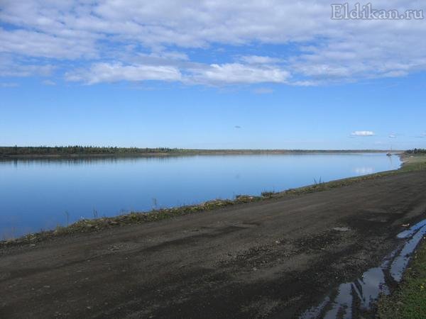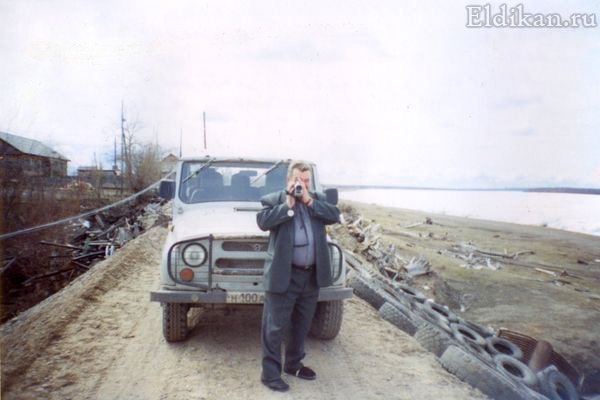 [Виды посёлка] Восстановленная дамба возле здания милиции. Рядом с УАЗиком – глава посёлка Соболев В.К.