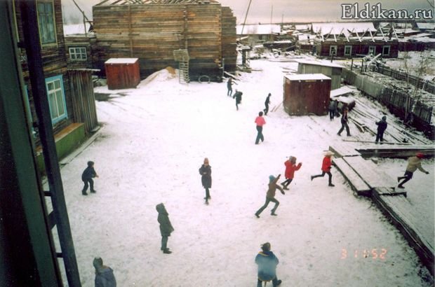 [Виды посёлка] Школьный двор (слева – интернат)