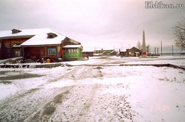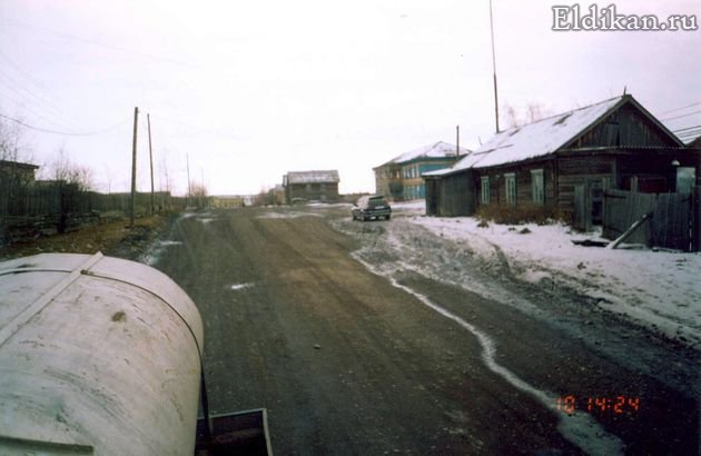 [Виды посёлка] Магазин № 11 ГУП «Эльдиканторг» (часть здания сдана в аренду, остальная – на консервации) и знаменитая непросыхающая лужа...