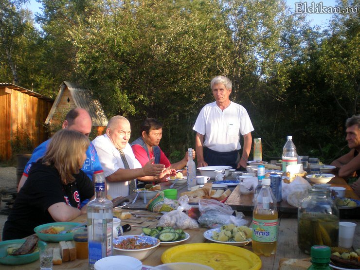 В этой галерее представлены фотографии со встречи земляков-эльдиканцев, прошедшей 21-24 августа 2009 года в посёлке Танхой (Республика Бурятия). Проживание было организовано в гостевых домиках и палатках в местечке «Дулиха». На второй день посетили Байкальский заповедник, - побывали на одном из водопадов, в музее природы и этногородке. Над каждой из фотографий-миниатюр при наведении курсора появляется описание изображения. При щелчке на минифотографии появляется окно Системы Показа Фотографий с поддержкой кнопок управления на клавиатуре «влево» («назад») и «вправо» («вперёд»), а также режима «Показ слайдов» (кнопка старта: