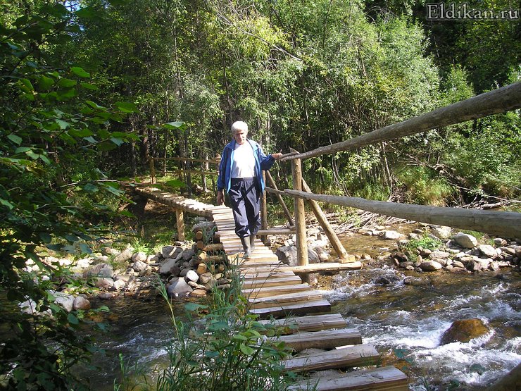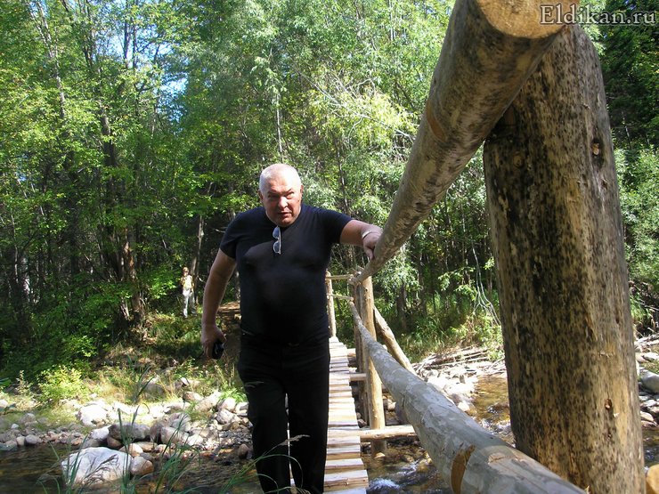 [Встреча-2009 (Танхой)] День второй. Поход к водопаду. Михаил Митюков на мосту через р.Осиновка.