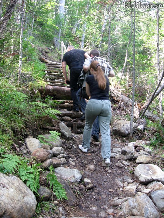 [Встреча-2009 (Танхой)] День второй. Поход к водопаду. Дорога на осыпающихся и оползающих склонах укрелена бревнами и камнями.