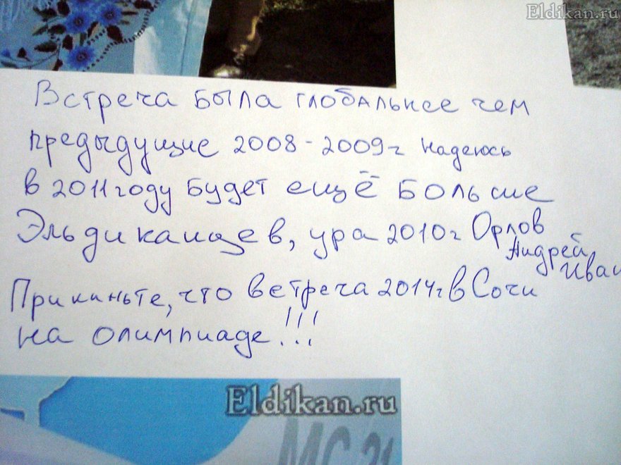 [Встреча-2010 (Ангарск)] «Встреча была глобальнее, чем предыдущие 2008-2009 г. Надеюсь в 2011 году будет ещё больше Эльдиканцев, ура 2010 г. Прикиньте, что встреча 2014 г. - в Сочи на Олимпиаде!!! Орлов Андрей Иванович»