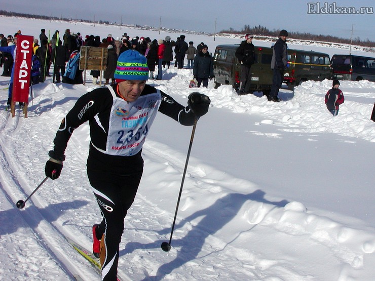 [Эльдиканцы] Борис Аммосов бежит 10 км на республиканских соревнованиях по лыжам среди ветеранов (с. Петропавловск)