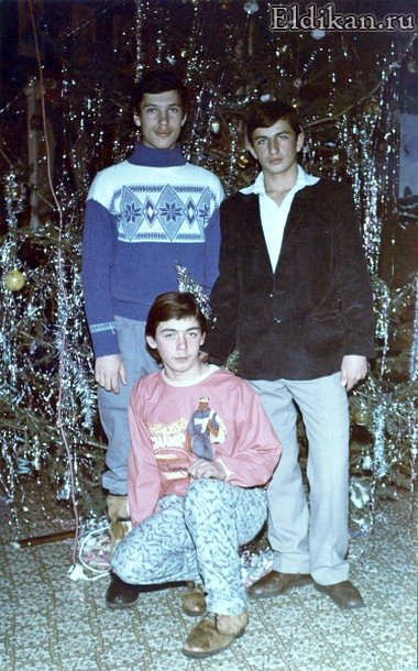 [Эльдиканцы] На Новогодней ёлке (стоят: Жомир Сергей и Раев Евгений, сидит: Каблуков Николай)